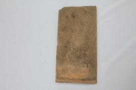 มีลักษณะเป็นแผ่นสี่เหลี่ยมปลายตัดตรง ตรงปลายด้านใดด้านหนึ่งทำเป็นขอเพื่อยึดกับกระเบื้องอีกแผ่นในการใช้มุงหลังคา และตรงปลายส่วนด้านหน้าที่ทำเป็นขอก็ตกแต่งด้วยลวดลายดอกล้านนา มีร่องรอยชำรุดบริเวณด้านข้างและปลายตัดอีกข้างหนึ่ง