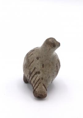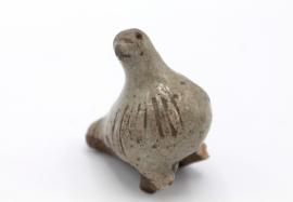 ขนาด : ส. 5.8 ซม. ก. 4 ซม. ย. 5.2 ซม. / ลักษณะทางกายภาพ : มีลักษณะเป็นปูนปั้นรูปนกตัวเล็กรูปร่างค่อนข้างอ้วนท้วม ขาสั้น ตกแต่งด้วยรอยขูดขีดบริเวณปีกของนก มีตาและมีจะงอยปาก ผิวเป็นเคลือบสีด้วยสีเทา ยกเว้นบริเวณส่วนขาและปีกหางด้านล่างมีร่องรอยชำรุดบริเวณเท้าและหาง