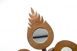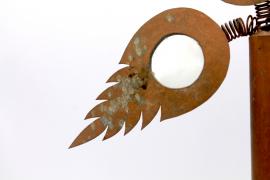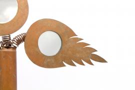 ขนาด : ส. 46.0 ซม. ก. 14.2 ซม. / ลักษณะทางกายภาพ : ทำจากทองเหลือง ส่วนฐานลักษณะเป็นทรงกรวย ขึ้นไปเป็นส่วนลำตัวลักษณะเป็นทรงกระบอก ส่วนปลายใช้สปริงเป็นตัวยึดจำนวน 3 ตัว กับกระจกสามบาน ลักษณะกระจกเป็นทรงกลมภายในกรอบทองเหลืองทรงเปลวเพลิง