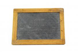 ขนาด : ย. 34.5 ซม. ก. 2 ซม. / ลักษณะทางกายภาพ : ตัวกระดานทำจากหินชนวน มีกรอบที่ทำจากไม้เพื่อยึดไม่ให้กระดานแตกได้ง่าย ส่วนผิวกระดานนั้นมีรอยขีดเป็นเส้นบรรทัดเพื่อใช้เป็นบรรทัดในการเขียน