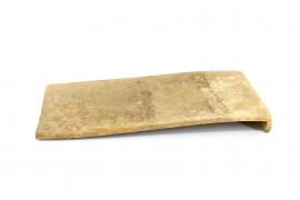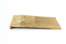ขนาด : ก. 10.8 ซม. ย. 22.0 ซม. ส. 2.1 ซม. น. 0.6 ซม. / ลักษณะทางกายภาพ : ทำจากดินเผา เป็นแผ่นสี่เหลี่ยมปลายตัดตรง ปลายด้านหนึ่งเป็นส่วนที่เอาไว้เกี่ยวกับระแนงที่รองรับ ลักษณะลวดลายบริเวณดังกล่าวทำเป็นลายดอกล้านนา จะเป็นลายดอกไม้ล้านนาในกรอบกลีบบัวซ้อนกัน 3 กลีบ