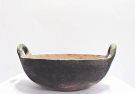 หม้อดินเผาใบนี้ ทำจากดินเผาทั้งใบ ไม่ว่าจะเป็นส่วนของตัวหม้อและหูจับ เป็นภาชนะใช้สอยในครัวเรือนสำหรับหุงต้มหรือใส่แกง มีคุณสมบัติพิเศษคือมีรูพรุนมาก รักษาความเย็นได้ดี สามารถเก็บแกงได้นานกว่าปกติ มีขนาด เส้นผ่านศูนย์กลาง 28.1 เซนติเมตร สูง 15.1 เซนติ