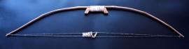 ธนู ทำจากไม้ไผ่ที่มีความยืดหยุ่นสูง ส่วนกลางมีด้ามจับทำจากไม้เนื้อแข็ง รัดด้วยเชือก ขึ้นสายเป็นสายเดี่ยวแข็งแรง ลุกธนูทำจากไม้ไผ่กลวง ต่อหัวด้วยโลหะ ต่อหางด้วยขนนกหรือขนไก่ เป็นเครื่องมือล่าสัตว์และป้องกันตัวของคนในอดีต สภาพสมบูรณ์ มีขนาดยาว 11 เซนติ