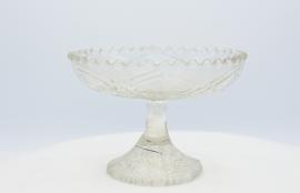 พานแก้วใบนี้ มีลวดลายโดยรอบ รูปทรงครึ่งวงกลม ขอบปากหยักอย่างรูปฟันปลา ใช้สำหรับใส่อาหาร หรือจัดพุ่มดอกไม้ตกแต่งบ้าน