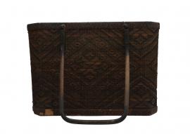 กระเป๋าสาน เป็นรูปทรงกล่องสี่เหลี่ยม ทำจากไม้ไผ่สานอย่างละเอียด มีลวดลายซึ่งเกิดจากการขัดสานอย่างสวยงามบริเวณผิวด้านหน้าและด้านหลังของกระเป๋า หูหิ้วเป็นไม้ ใช้ใส่ของขนาดเล็กๆเมื่อออกไปนอกบ้าน เช่น ไปงาน ไปตลาด