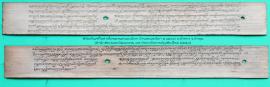 คัมภีร์ใบลานขนาดยาว จำนวน 4 ผูก จารเมื่อ จ.ศ.1231 (พ.ศ.2412) จารโดยไชยยวงส์ภิกขุ เพื่อถวายครูบาอุปละ วัดหนองเงือก