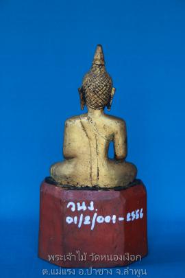 พระพุทธรูปไม้แกะสลัก ปางประทับนั่ง สร้างเมื่อ พ.ศ.๒๔๐๑ มีข้อความจารึกตรงฐาน ดังนี้ "จุฬสักกราช 1220 ปีเปิกสง้า เดิน 5 เพง มิงวัน 2 ปถมสัทธาหมายมี ทุยาวุฑิ เปนเคล้า พว่าพ่อแม่พี่น้องได้ยส้างพุทธพิมพาไว้ยโชฏกะ สาสนา ยาว ปญฺจสหสฺสา อิมินา พุทฺธ พิมฺพา ทานํ มหาผลํ ติวิทฺธ สุกฺขํ นิพฺพานํ ปรมํ สุกฺขํ ฯ วัดหนองเงือก"