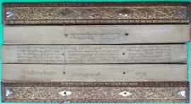 ไม้แกะสลัก ลงรักปิดทอง ประดับกระจก ใช้เป็นแผ่นประกบคัมภีร์กัมมวาจา