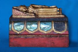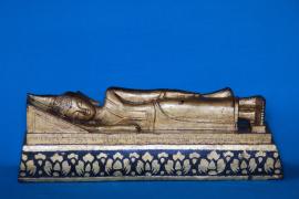 พระพุทธรูปไม้แกะสลัก ลงรักปิดทอง ปางไสยยาสน์