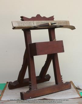 ค้างธรรม ทำด้วยไม้ ใช้สำหรับวางคัมภีร์ใบลานและจัดเก็บอุปกรณ์