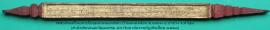 ไม้แกะสลัก ลงรักปิดทอง ใช้เขียนชื่อคัมภีร์ใบลาน ปีที่สร้าง และผู้สร้าง ฯลฯ "อภิธัมมา ๗ กัมพีร์ มี ๗ ผูก ฯ ปถมสัทธาผู้ข้าทังหลายหมายมีเตชภิกขุเปนเคล้า แลเชยยวงส์ภิกขุ คันธวงส์ภิกขุ ปัญญาสามเณร ยาวิไชยสามเณร พินทาสามเณร อภิวงส์สามเณร ส้างค้ำชูสาสนานี้ ๕ พันพระวัสสาแล ฯ