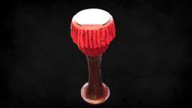 ตัวกลองทำด้วยไม้มีลักษณะกลม กลองขึงด้วยหนังเย็บด้วยเอ็น